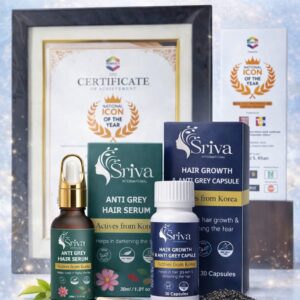 sriva Korean Hair Combo | Hair Serum (30 ml) + Anti Grey Hair Serum (30 ml) + Capsules (30 Capsules, 30 g) | Reduces Grey Hair (1 Items in the set)